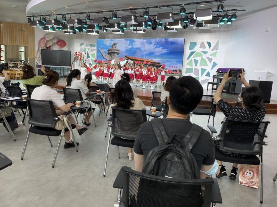接着是由中班组的老师和孩子们,进行了“立德树人 红心向党 茁壮成长”系列活动童声合唱展演,孩子们用稚嫩的歌声向各位老师表达自己的热情与欢迎。